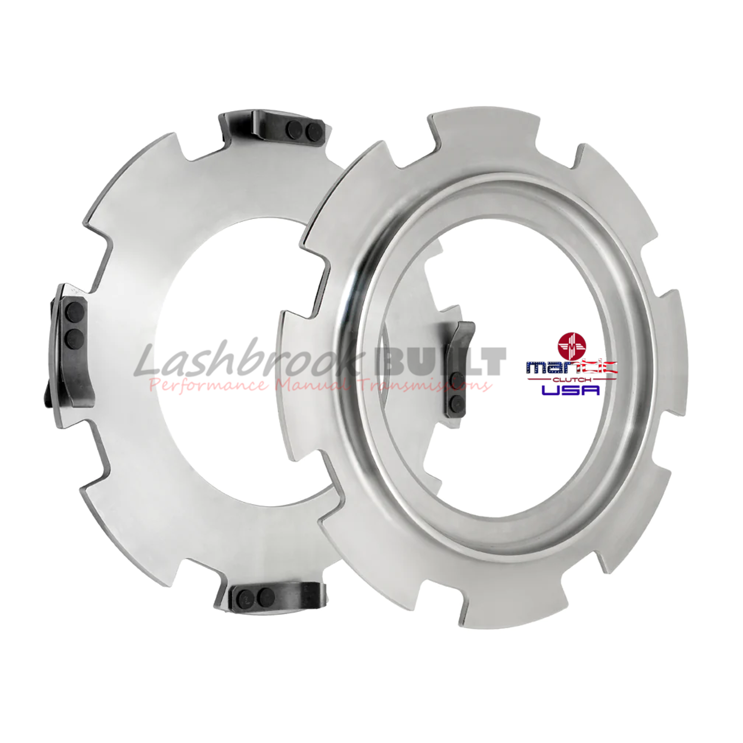 The Mantic 9000 series features a Sprung Center with cushioned discs, using our premium Ceremetallic Friction material. This equates to more torque capacity and heat resistance while retaining excellent drivability with approximately 12-15% increase over the OE clutch pedal feel. The Mantic 9000 series clutches are twin disc, 9” (225mm) diameter which greatly reduces the MOI. This allows more power to be put to the ground as well as quicker more precise shifts when compared to the heavier OE flywheels.